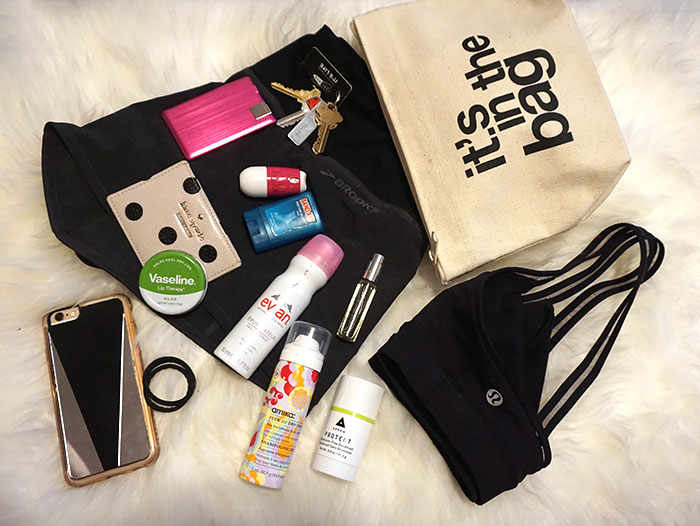That’s the one I’ve had in my workout bag since the beginning of time. Or as I’m always saying, I don’t have a workout bag, I have a workout makeup bag. Since I mostly cycle and do yoga instead of pre-packing a whole bag, I make a to-go makeup bag with everything I need that comfortably fits in my hand bag in case I can squeeze in a workout. Since shoes aren’t a factor in yoga, and cycling studios have custom ones they provide, I make sure everything including my outfit, keys, phone… and beyond fit in this makeup case.