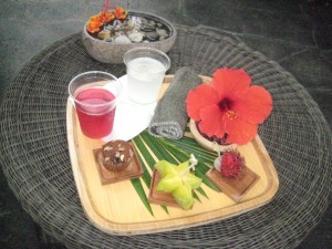 (KC): Just to fine tune the menu, see what are guests are enjoying build off of that. Also to continue to add to our Apothecary and source more ingredients. As of the new year every treatment will have a tie in to the Apothecary and the Waiea Garden. There will be a small menu of mini services and snacks offered in the Waiea Garden. To begin the relaxation process, guests who arrive early for their appointments (or once they conclude their session) are invited to wait in the Waiea Garden, and offered refreshments and a surprise foot refresher or face spritz. We serve pure coconut water and a refreshing hibiscus beverage and treats made by our chefs, which include marinated local fruits and energy bars.
