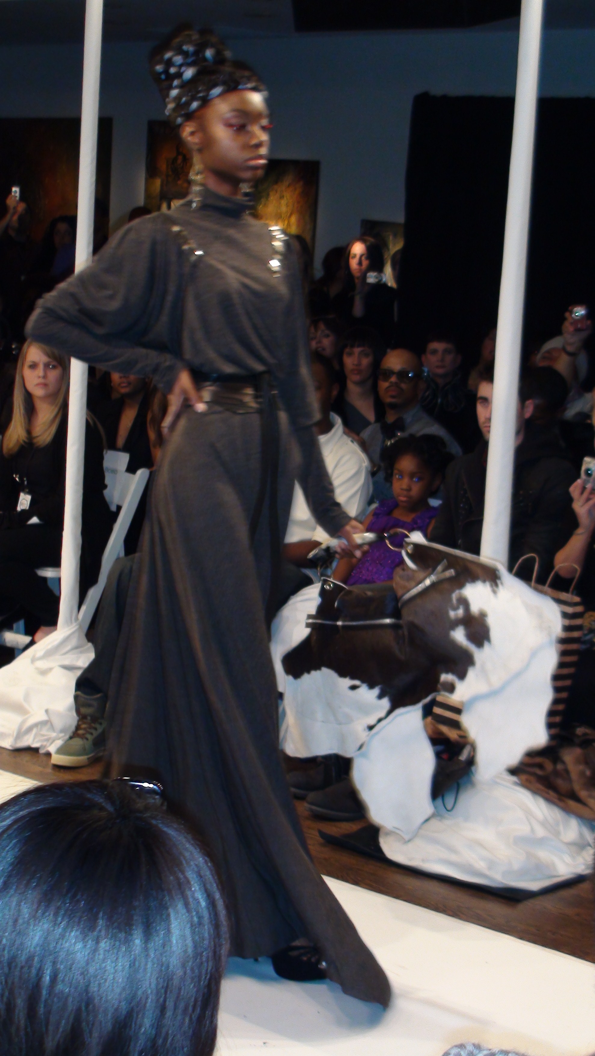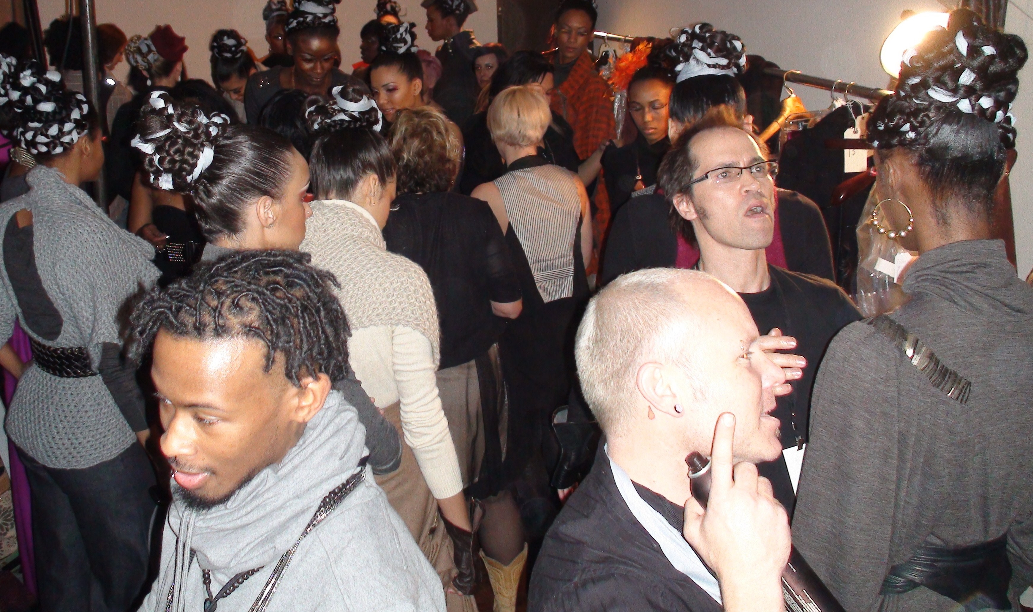 What a fabulous opportunity to go backstage to Project Runway Alum, Korto Momolu’s Fall 2010 show. The concept for the collection was all about going natural; clothes, jewelry, hats, and handbags as well as the hair and makeup.