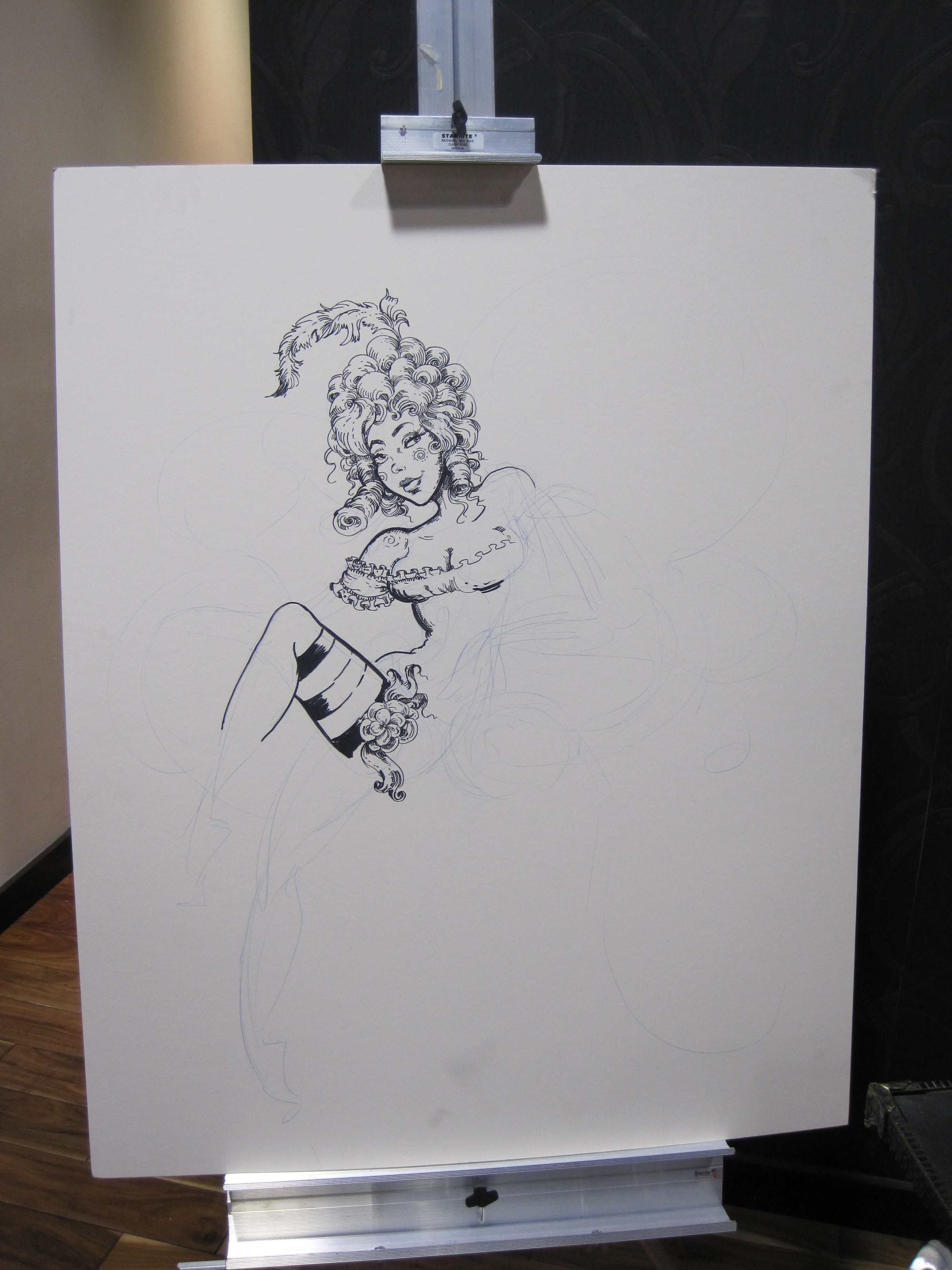 MC: I did. All these models are my friends and the top burlesque performers in NY. They are all kind of my muses –I come from the Burlesque scene. They are all styled to look like my drawings. I picked big crazy hair, striped tights, and little booty shorts.