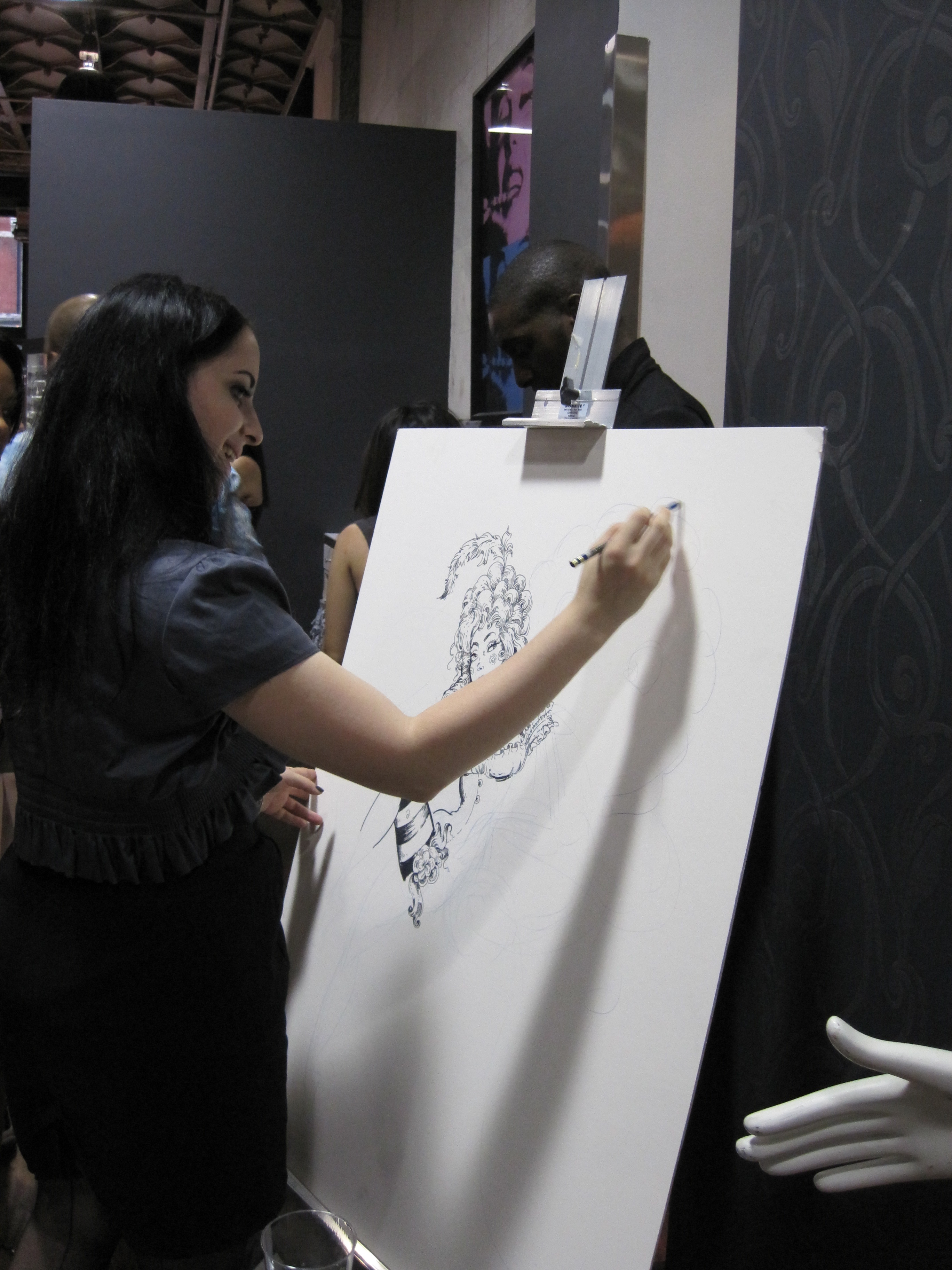 Dirtee Hollywood celebrated the collaboration at Fred Segal in LA, and Atrium in NYC, where Pretty Connected had the pleasure of meeting Molly and watching her work (she literally transformed a blank canvas into a burlesque-vixen with an octopus before our very eyes (see pictures below).