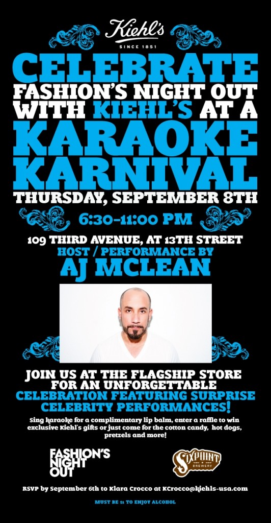 The Happening: Aj McLean hosts/performs at Kiehl’s Fashion’s Night Out Karaoke Karnival.