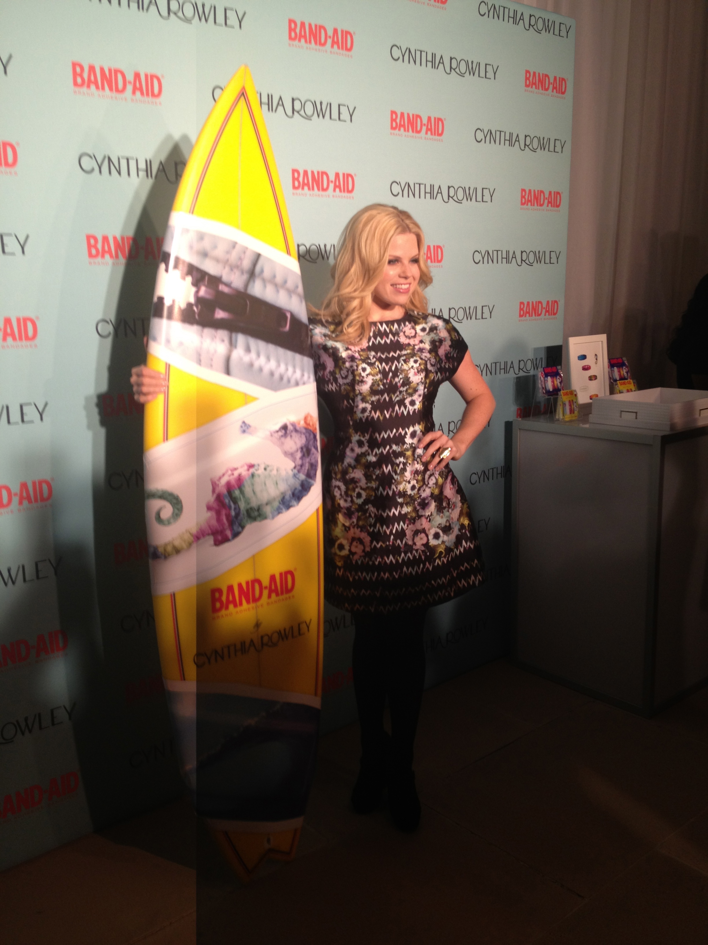 As some of you know after going nut-so over the Cynthia Rowley BAND-AID’s they asked me to be a blogger ambassador last year for the collection! At that time they we’re limited edition, however due to the enormous success and popularity, the duo are collaborating again! And as part of the celebration, BAND-AID hosted a backstage lounge at the show and gave guests a sneak peek at the new collaboration, the BAND-AID Brand Beach Sport Kit. The kit ($10) which will launch May 2012 includes 20 newly designed bandages, 4 NEOSPORIN single use packets, and resealable plastic pouch to hold your beach essentials (and big enough to hold and protect your cell phone!).