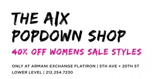 Starting March 19th, A|X Armani Exchange will launch its first-ever A|X PopDown Shop at the Flatiron store. With all items marked at 40% off, the new A|X PopDown Shop is an exclusive women’s only private sale that will serve as an underground hotspot featuring some of the most stylish A|X wear-now pieces, including dresses, denim, accessories and outerwear.