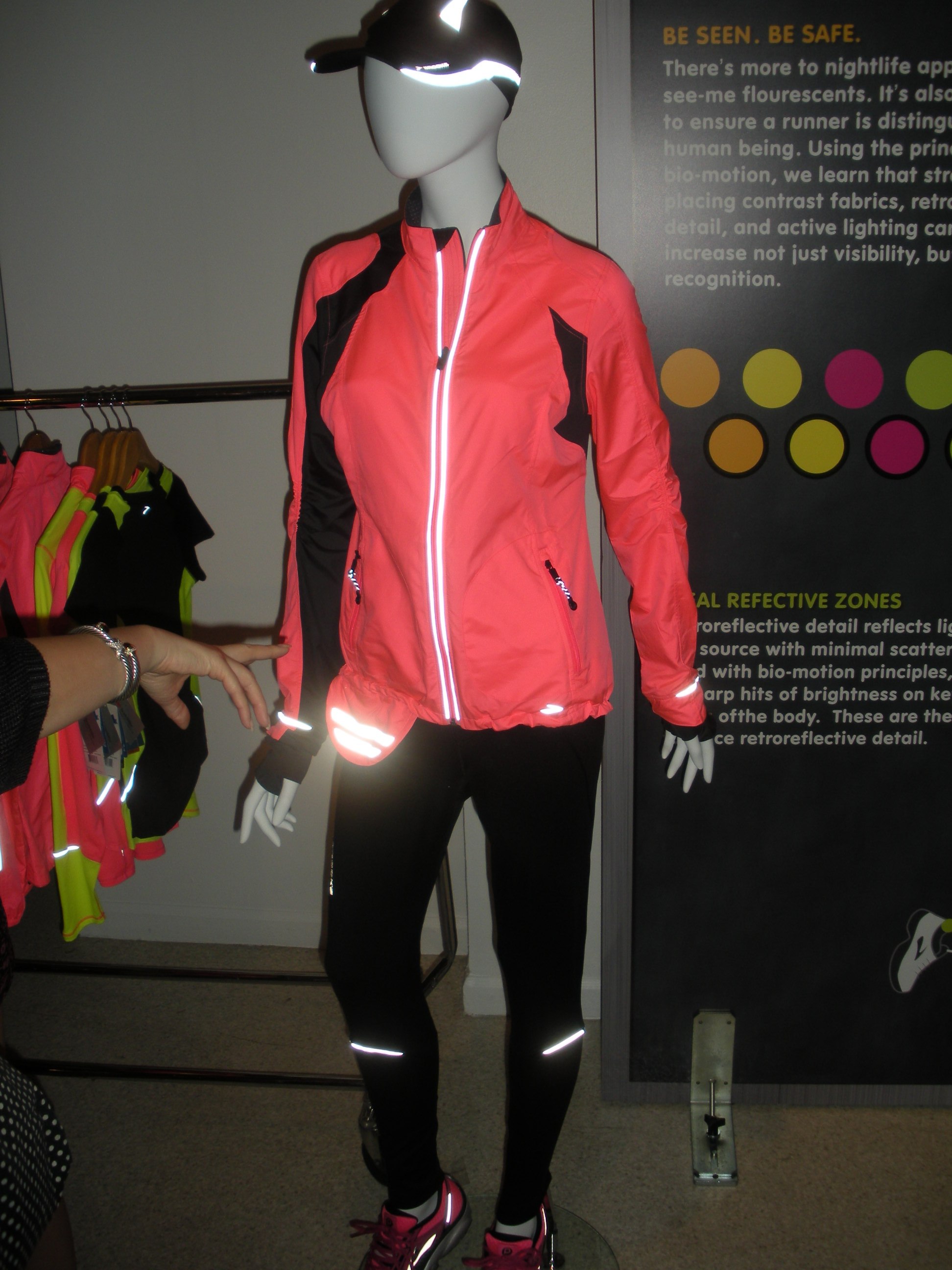 Not only were the shoes amazing, but Brooks has developed special night safety apparel that allows drivers to recognize a person in motion by outlining the silhouette of the figure.