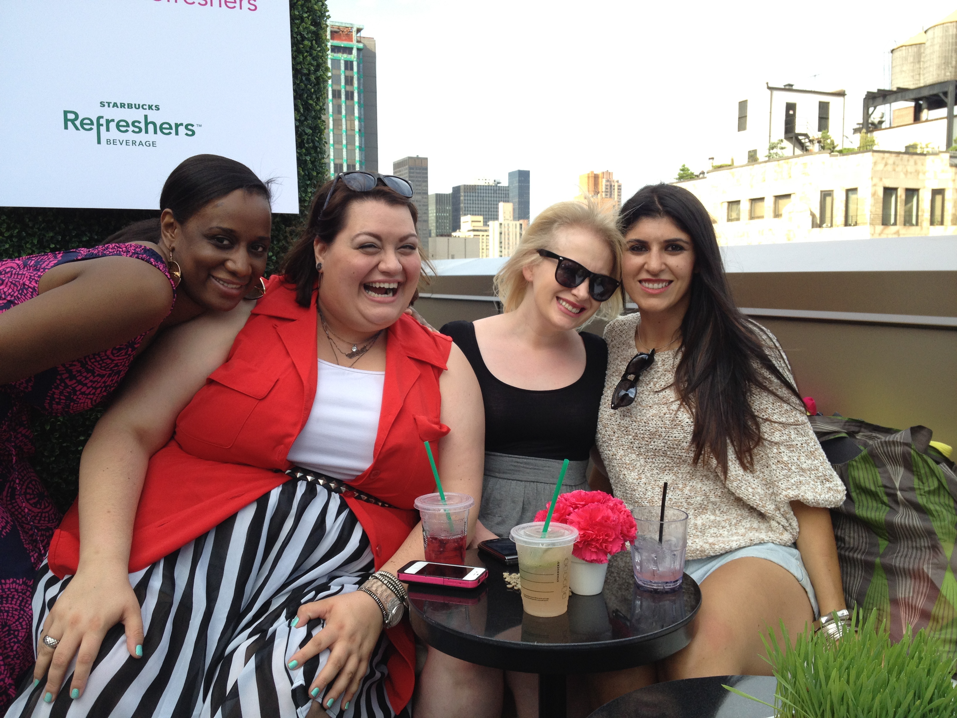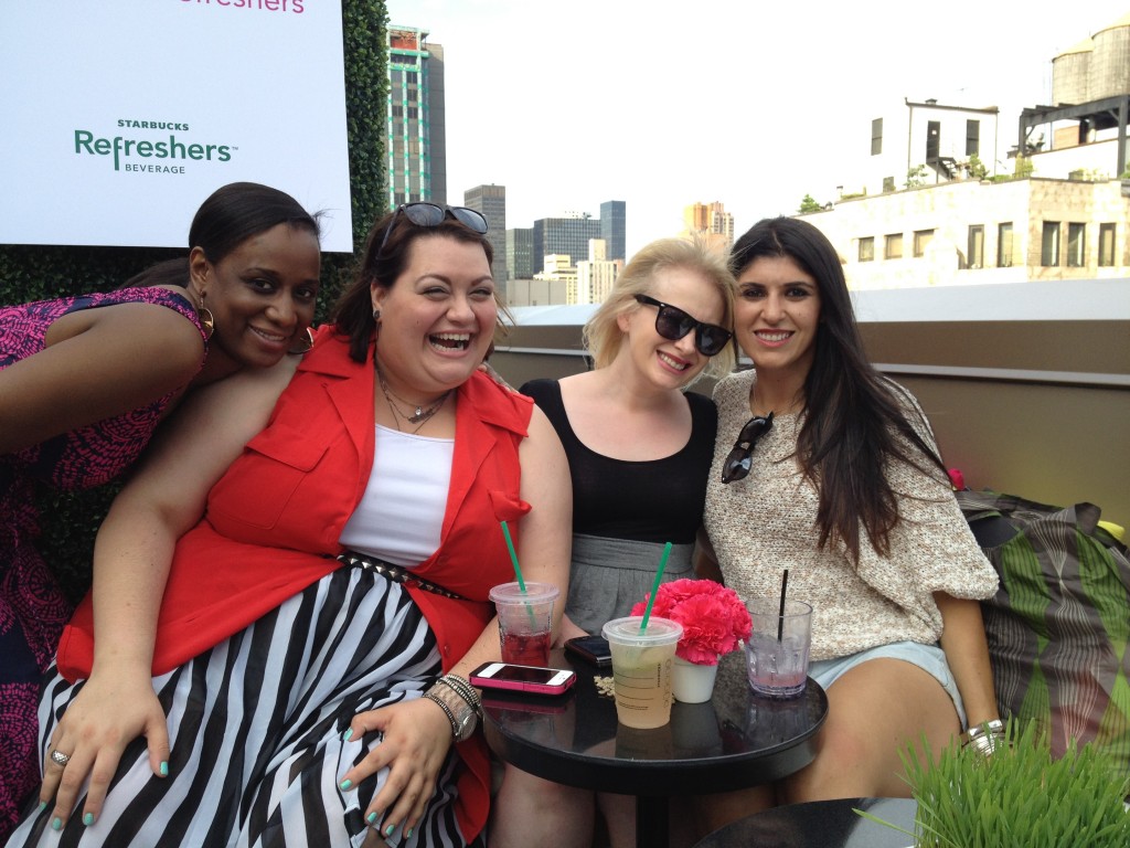 Last night I went to a summer soiree hosted by Starbucks in celebration of the national launch of their NEW Refreshers beverage. This product is B-A-N-A-N-A-S! (Figuratively not literally.)  It actually come in two flavors, Very Berry Hibiscus (my preferred flavor) and Cool lime and despite tasting closer to refreshing flavored lemonade type beverage, it’s actually coffee. Naturally caffeinated from green coffee extract (which offers about 1/4th of the amount of caffeine as regular coffee), Starbucks Refreshers combines real fruit juice to make this the perfect afternoon-pick-me-up. They have 100 calories and contains 50% of your daily value of Vitamin C. Prices start at $2.90 for a Tall size (12 fl oz.).