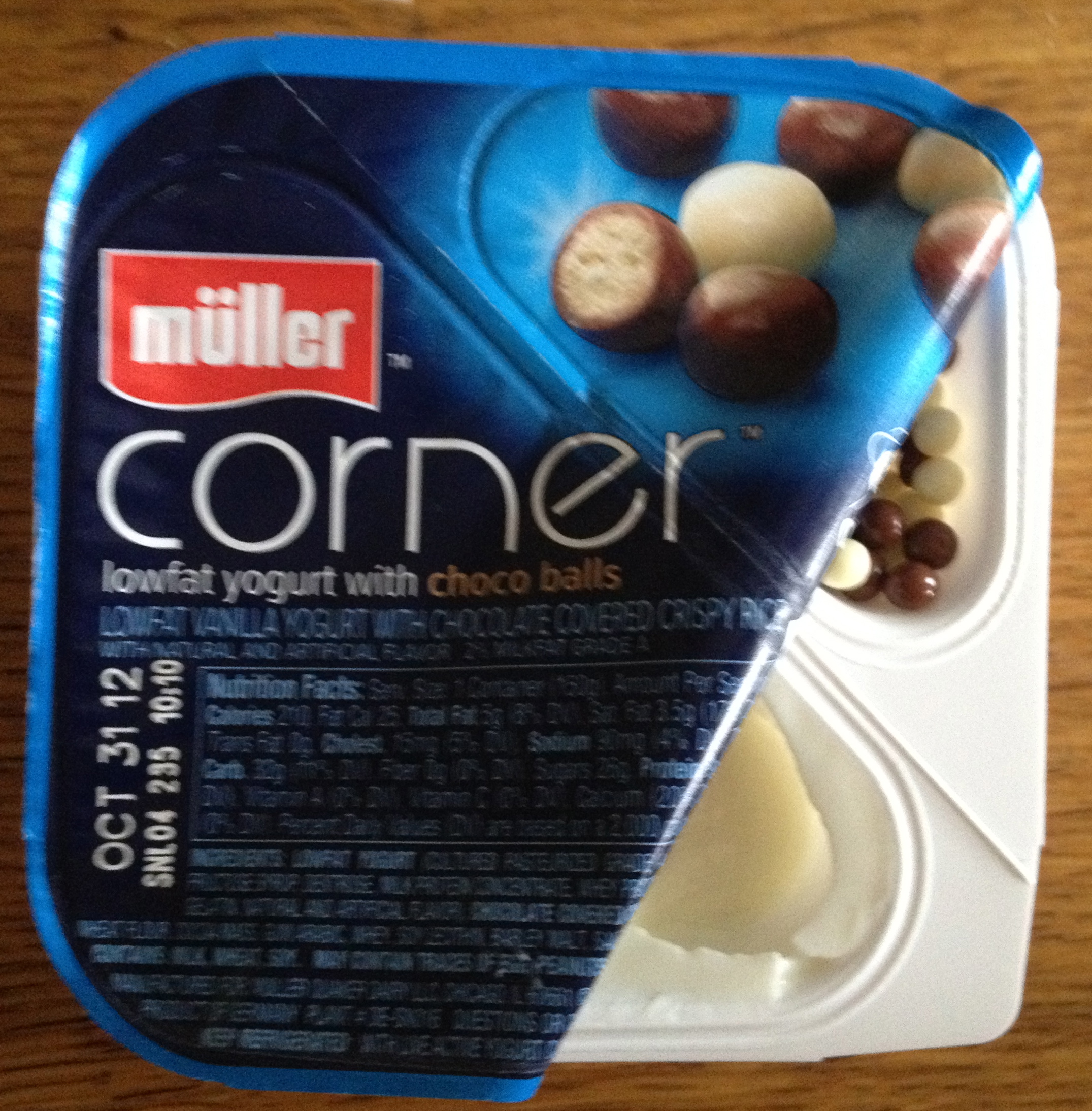 I also wanted to try one of the candy flavored Müller™ yogurts so I settled on the Müller™ Corner lowfat yogurt with Choco Balls — it tasted like dessert. The combination of the vanilla yogurt and Choco Balls was delicious!