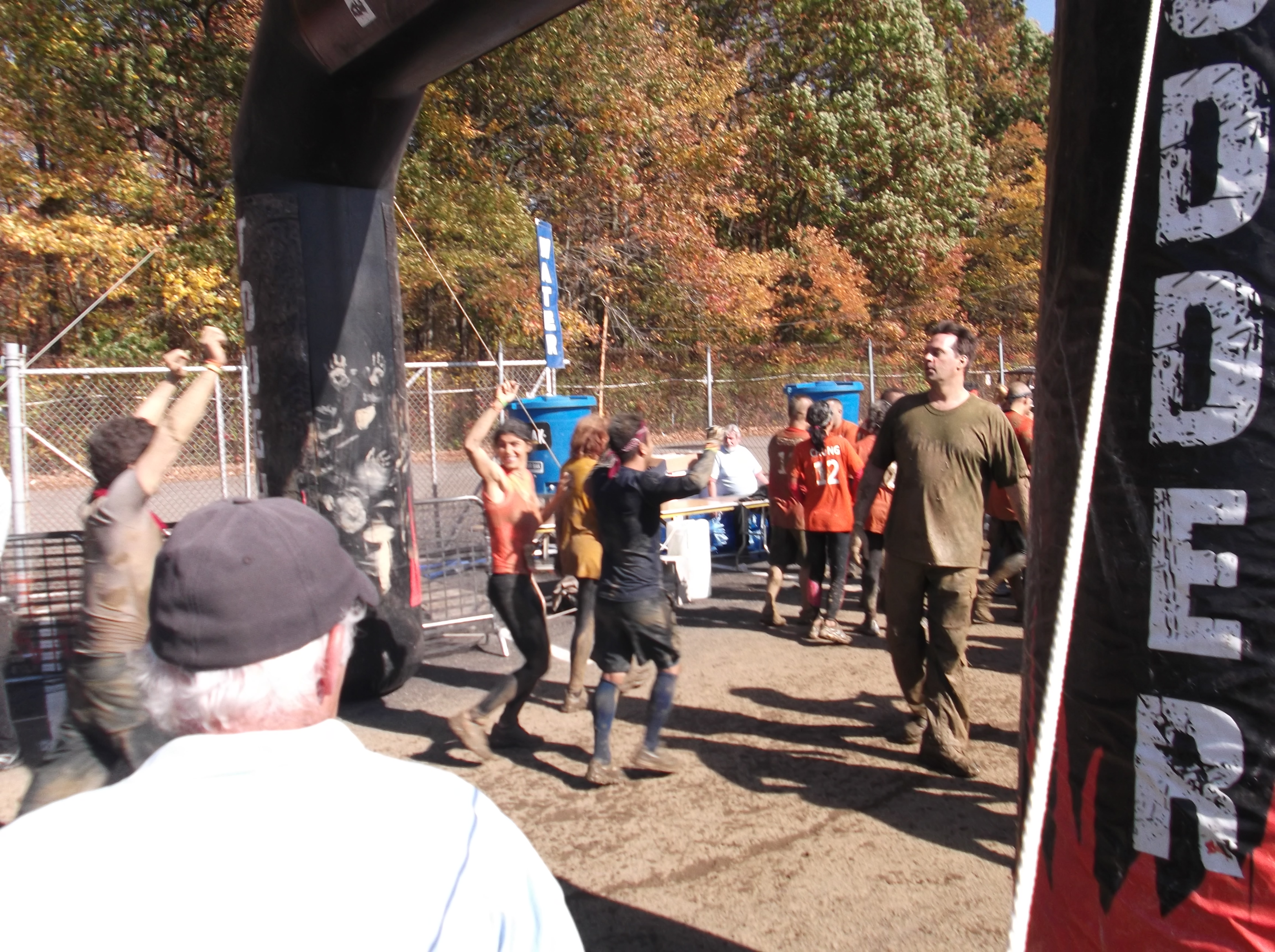 The finish line is exciting (you’re bursting with joy when you run through it) but the after math is a little anticlimactic. A volunteer gives you an orange head band and congratulates you, then you file to either side to get a shirt and then wait in a long line for a beer. There are also sponsors generously handing out deodorant and Cliff bars. Then it’s done, you’re insanely muddy and back in the main area where you registered.