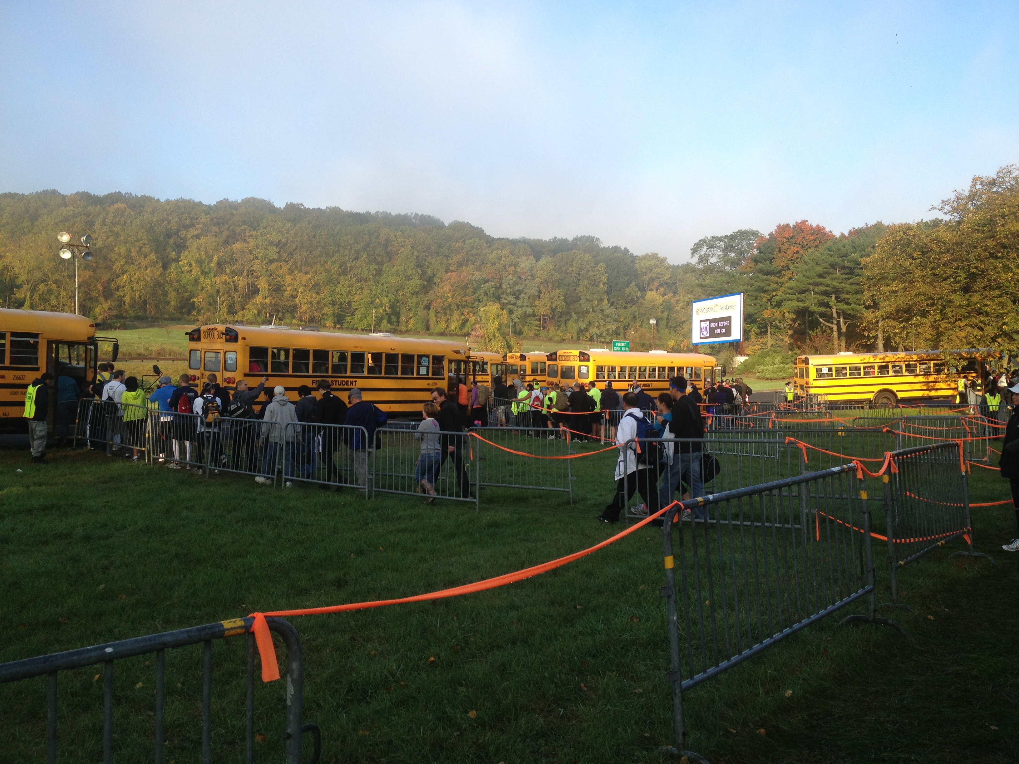 Tough Mudder is all over the US (as well Canada, UK and Australia). For NYC, we qualify as Tri-State and for the date I wanted that meant going to New Jersey; roughly 1 hour out of the city. The unfortunate part is that once you park in the Tough Mudder parking lot ($10 charge), you still have to a 40 minute shuttle to the course. At least the shuttle is free, and in the shape of a school bus!
