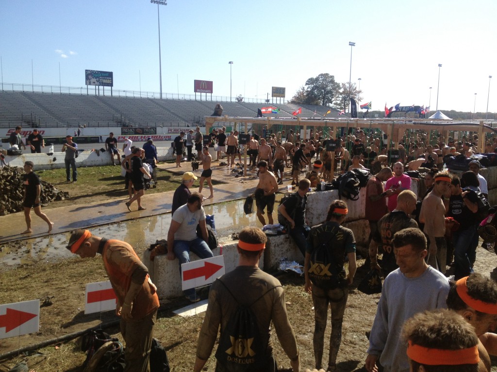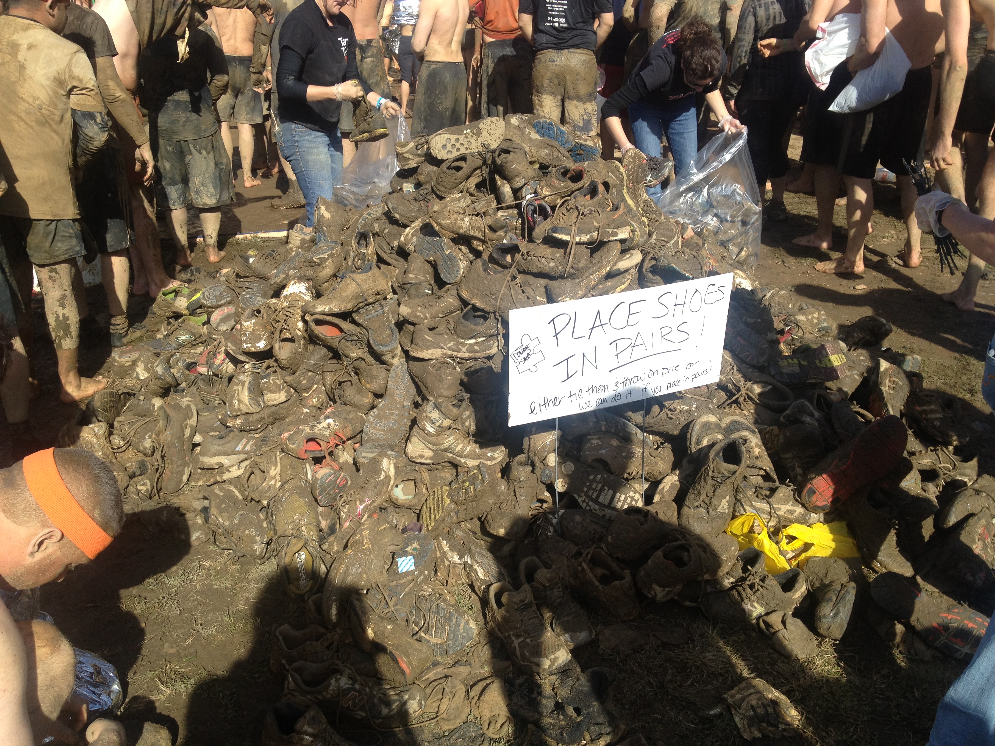As for shoes wear something you’re willing to part with since they get so gross that you’ll probably end up donating them after the race. I drilled holes in mine to let out water when I ran. I did see a lot of people with the Vibram Five Fingers, which is probably ideal since they don’t retain as much mud and seem easier to clean.