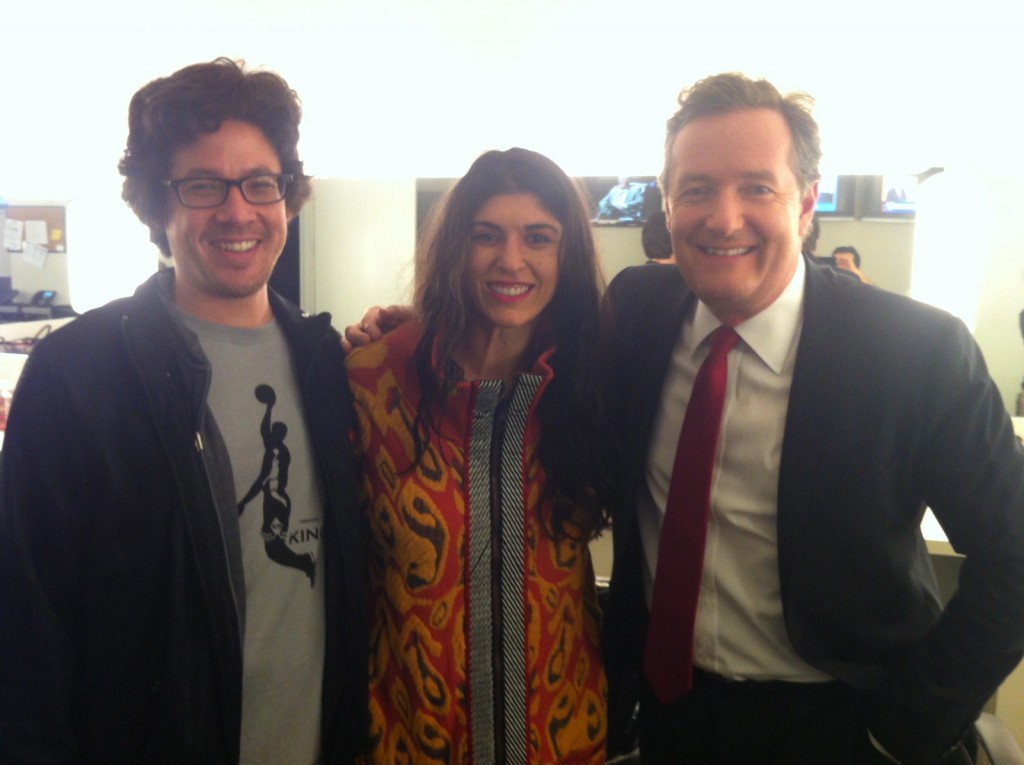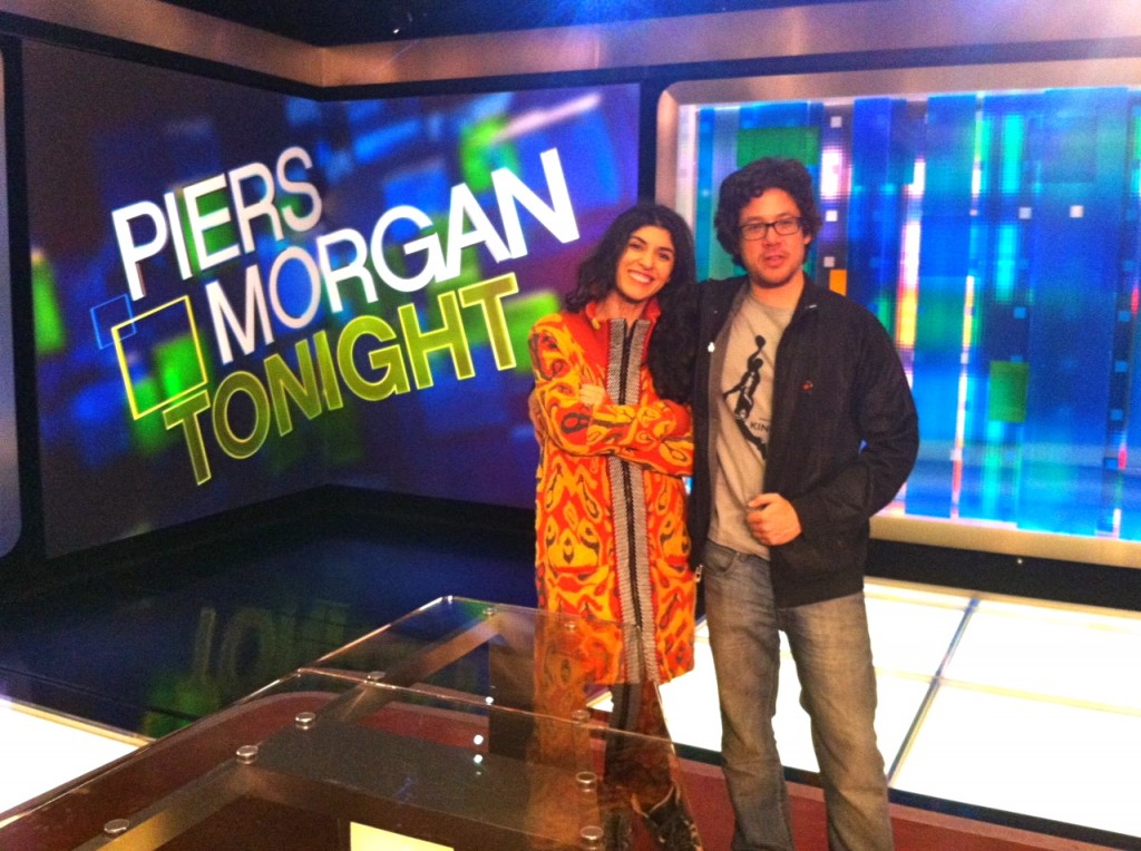 I confess, I’ve been scrambling this week. I was committed to not working today to give my boyfriend, James a 100% of my attention (he took the day off) for his birthday which could not have fallen on a busier week. In attempting to do so, I pulled my first all nighter since college (the lack of beauty sleep shows in the pictures) and forgot to plan the day! Fortunately, I have the best friends in the world and texted one of my dearest, Shant this afternoon asking if he could give us a private tour at Piers Morgan. (We made a last minute plan to see the “Playing with Fire” exhibit at the MAD Museum across the street) Well it’s true what they say about 12/12/12 birthdays — they are lucky! Piers Morgan himself (right before he had to go on set live) came with our tour!