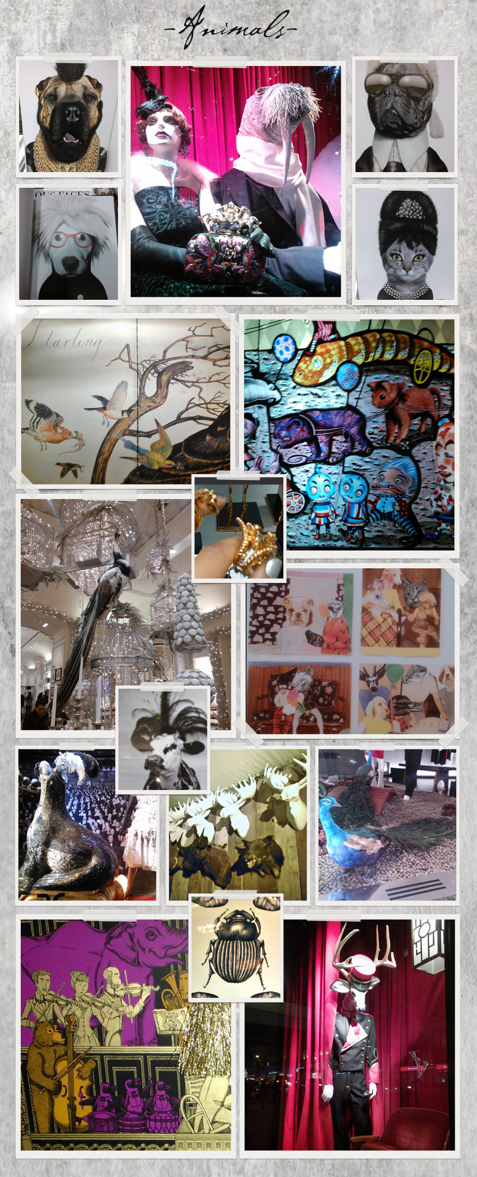 NYC has always been a deep source of inspiration for me, especially during the holidays with all of the window displays up Fifth Avenue! As is nature, animals and especially feathers –I’m fascinated by different textures, patterns and shapes. While this entire post is my mood board, I shot so many images, I decided to compartmentalize them by Inspiration (images that were total show stoppers), Animals, Feathers and Because, Love (which plays to things I love, ranging from antique mirrors, chandeliers, glam rock to classic icons like Brigitte Bardot).