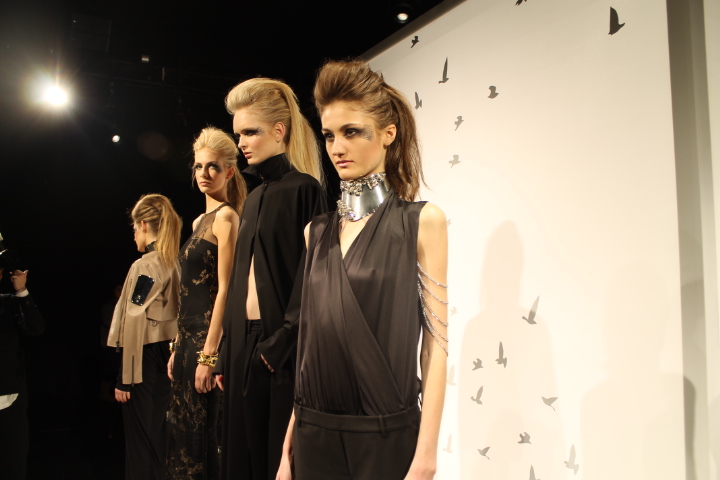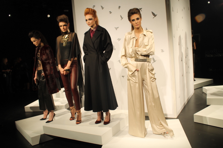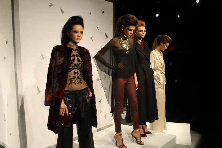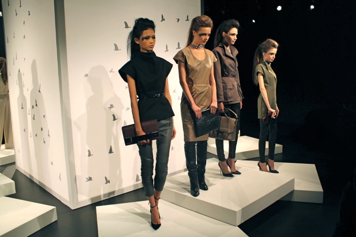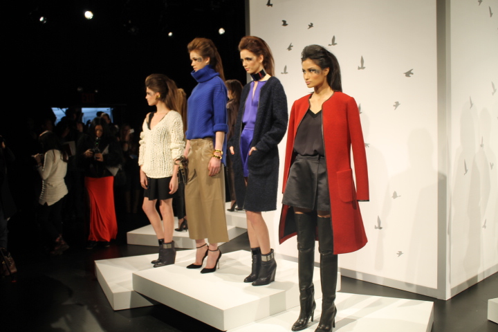 “My inspiration for Fall/Winter 2013 began with a recurring dream I’ve been having for years. In the dream, I’m running as fast as I can until I take off into flight. I also recently visited an exhibit with these really interesting midcentury photographs of birds at MOMA and became fascinated with the shapes they create with their wings while in flight. So you’ll see a lot of graphic shapes in the collection that were inspired by those references. With regard to tailoring, I began thinking a lot about vintage military and aviator uniforms shapes while developing the silhouettes for the season.” – Monika Chiang, Designer