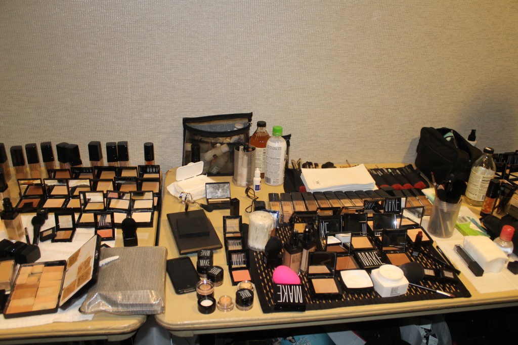 Hosted at the W Hotel in Union Square I was greeted backstage by the beauty team. New makeup line, MAKE created the look in collaboration with Vosovic. Led by Kristin Hilton, MAKE’s team of artists created a contemporary look that spoke to Daniel’s inspiration which referenced modern aristocracy – a polished girl with a playful side. A bold, statement lip was the focus of the look which was offset by the regal, porcelain-like skin. I asked Hilton to describe the look in three words to which she described, “rich, rock and roll and chic.”