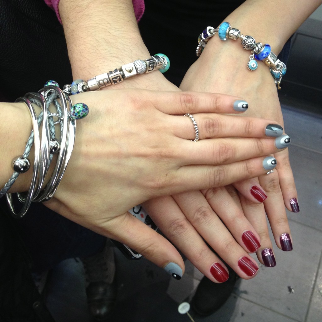 {My readers not only have great taste in jewelry, but check out the nails! (Mine are on top)}
