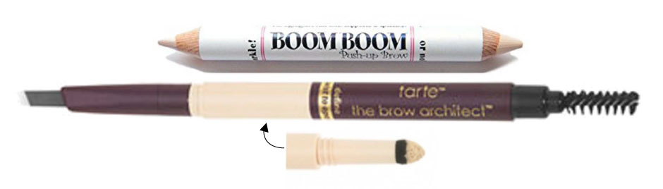 To get the most out of your current brows start by highlighting those beauties with a brow highlighting pencil such as Boom Boom Push-Up Brow Highlighting pencil. Use the matte concealer side on the brow bone to create the illusion of lift and to camouflage stragglers that grow. Dab the sparkle side on the inside corner of the eye for a dash of pop, and/or line the lower inside of the eye with the matte side to make eyes look awake.