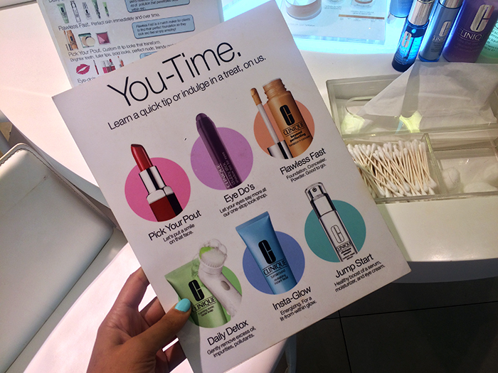 Understanding that consumers come to them with all different needs, Clinique has launched You-Time, a range of 6 skin and makeup services to fit every schedule and skin type. For color they have Pick Your Pout (for those looking for a the perfect lip), Eye Do’s (for an eye-makeover) and Flawless Fast (which helps you find that perfect foundation, concealer and pressed powder). For skincare they offer Daily Detox, Insta-Glow and Jump Start which are all services to address your skin type and skincare needs.