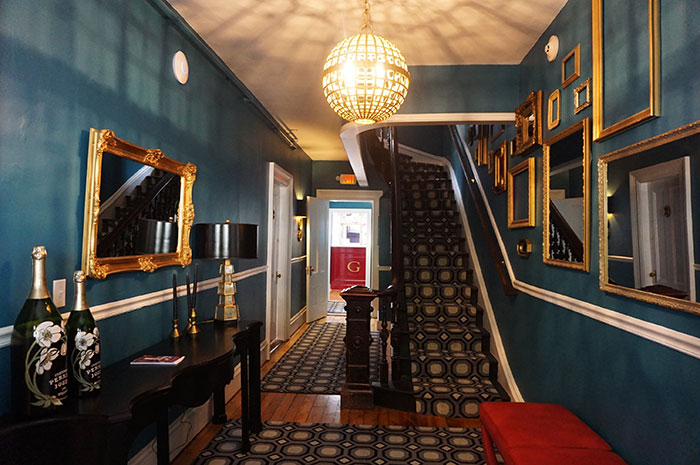 While in Newport we stayed at the recently opened, Gilded. A boutique hotel with bit of a bed and breakfast feel that’s both welcoming and whimsical. With loads of personality and a darling decor, the Gilded features 17 rooms with LED Smart TV’s, iPads loaded with local information (where to eat, visit, tour…) and the dangerously comfortable beds topped luxury linens for an ultra luxe stay.