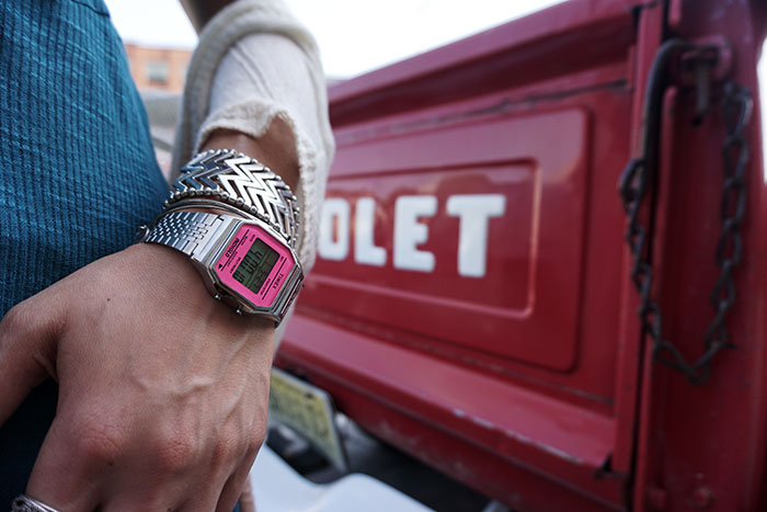 James and I have an extensive watch collection and one of my favorites from it is the classic Timex 80. I’ll admit we use them more as an accessory then for time keep (most aren’t even set) and I’m so in love with all the colors it women in (and that it’s available in a gold and silver finish). Since I’m always stealing James’ men’s watches we have the pink/silver version for me and the orange/gold version for him (even though I borrow that one all the time). It’s a really fun accessory that gives a nice retro twist to any outfit.