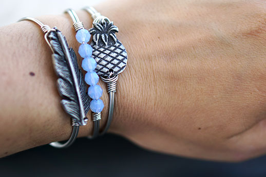 Lastly, I just discovered Luca+Danni bracelets. They have so many cute stacking ones — even a pineapple one which I feel like this has been the summer of pineapple prints on shoes, bags, fake tattoos that I bracelet is just what I needed to join the party. All of their products are made in the USA and based on positivity.
