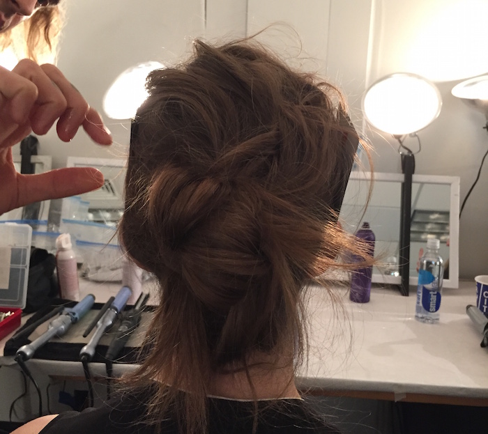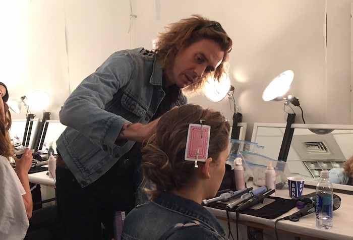 James Pecis for Beauty.com, the mastermind behind the Lela Rose hair, was mainly concerned with keeping the girls edgy. With clothes as delicate and lovely as Rose’s, it’s important to keep the looks grounded. Using all Alterna prodcuts, Pecis achieved this with creating a messy, undone knot. The hair is teased up lightly in the front and then clipped to the side and tied in two square knots in the back. “The collection is super feminine, super beautiful, very girly,” says Pecis. “With the hair I toughened things up a little, made it a little bit boyish.” He planned the knots intentionally to get the look of an updo without the strictness of a chignon or similar style. To maximize hair potential Pecis uses Alterna Haircare products such as the Bamboo Volume Uplifting Root Blast and the Bamboo Volume Weightless Whipped Mousse. To make the messy waves on the models even, he makes loose curls where necessary with a 1-inch iron.
