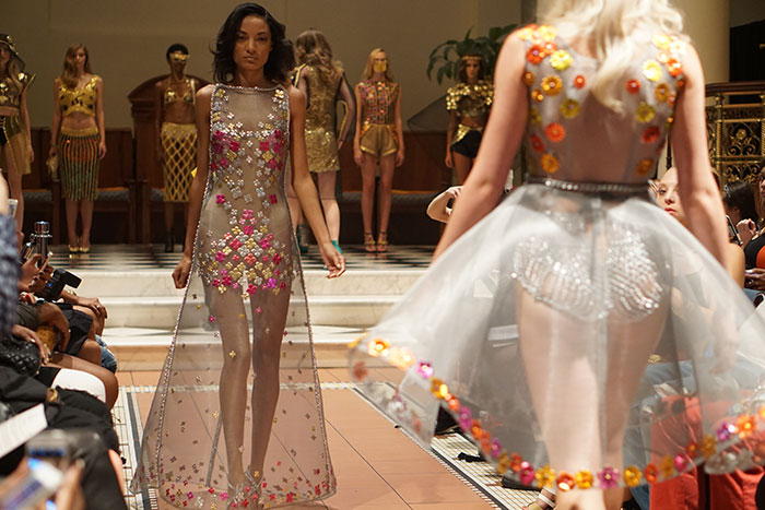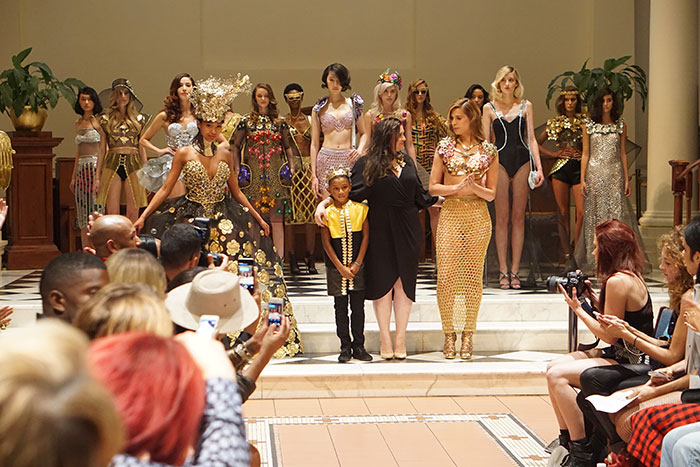 Whenever you see creativity on the runway you can’t help but stare or drool over every last detail. I’ve been a fan of Laurel DeWitt for some time, I mean come on she does metal apparel, how cool is that?. We cover her show every season and for Spring/Summer 2016 her collection did not disappoint. Her ever evolving-craft and attention to detail makes every piece a work of art. A romantic fantasy with regal jewel tones takes you to a modern day take on medieval fashion. As if the knights amour mixed with the Queens jewels and was reinvented for the 21st century.