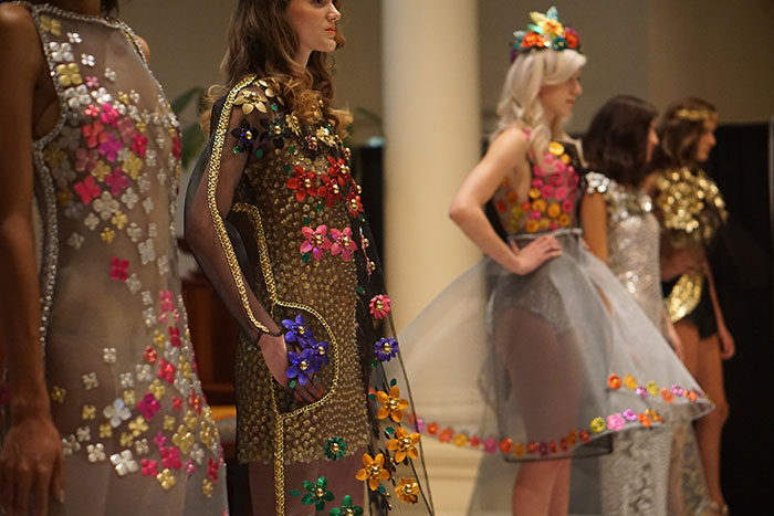 Like the two aforementioned legends above, Ms. DeWitt is also self-taught, but in the craft of metal mastery. With fashion at top of mind – wearable, elegant clothing with metal at its core – this season’s soft spectacle lays witness to a collection of eternal flowers, of heirlooms for life.