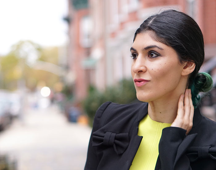 What’s great about this updo is it should take only a few minutes to go from casual to polished—especially if you flat-ironed the top part of your hair earlier in the day, like in my original look. Also, center parts have been a huge trend this season, and this is a great opportunity to master that look. If you prefer a different part, this look is flexible enough to make it your own.