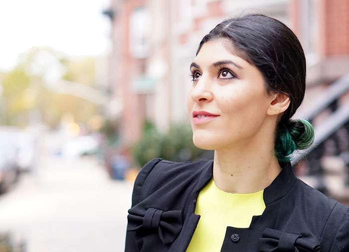 Playing off this day-to-night, hair-on-a-time-crunch theme, an easy hair look for a causal Friday is what I like to call a faux straighten. If you have some natural wave to your hair but the roll-out-of-bed look has more frizz than definition, take your flat iron (I like the CHI Air Classic 1-inch Tourmaline Ceramic Flat Iron) and, going with the grain of your hair, lightly flat iron it from root to mid-section. In my case, I go down to where the green starts to form in my hair color. Do this in larger chunks of hair so you keep the volume and natural texture but get the shine of the flat iron. If you want a more perfect ’70s-iron effect, flat iron the hair in smaller chunks with more precision. The look I created is more for a quick five-minute spruce-up that’s meant to keep the hair texture and not look overdone.