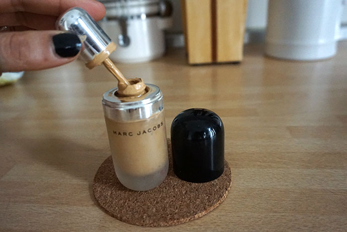 I’m long overdue for this review! I’ve been playing with the Marc Jacobs Beauty Re(marc)able Full Cover Foundation Concentrate and Under(cover) Perfecting Coconut Face Primer since they launched in July. They are truly remarkable products worthy of their names if you use them correctly. For starters the foundation is a concentrate which means it’s about as full coverage, and as potent as they come — so you only need a little bit! Apply it to your hand first and then with a brush, beautyblender or your finger blend onto skin for maximum coverage. Unless you like a lot of coverage this may be too heavy or concentrated which is way it launched simultaneously with the Under(cover) Perfecting Coconut Face Primer. Together you can adjust these two products for your perfect weight and coverage level.