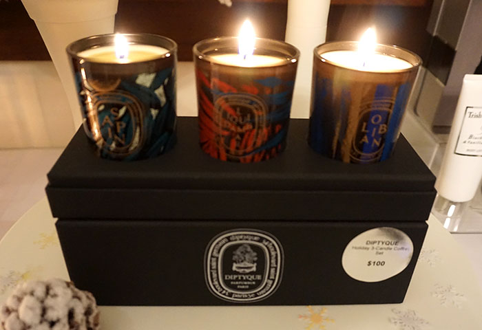 diptyque-candle-setFrom hostess gifts to setting the perfect holiday ambiance, candles are the way to go! Diptyque Colored Glass Candle Trio includes three beautiful new candles dedicated to the olfactory attributes of trees to light up the holiday season. Housed in colored glass, each candle is 2.5oz and has a 30-hour burn time.  The trio includes: