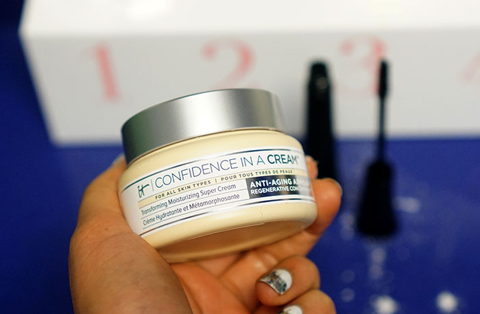 I’m not usually excited when cosmetics brands launch skincare, I like brands to stick to what they are good at, especially in such a saturated marked. However, considering It Cosmetics has the most amazing foundations and is known for working with plastic surgeons and dermatologists for their formulations you know they are going for the gold for their first skincare launch. The NEW Confidence in a Cream moisturizer has been 7 years in the making and contains my two favorite words (okay, technically it’s three): Ceramides and Hyaluronic Acid!