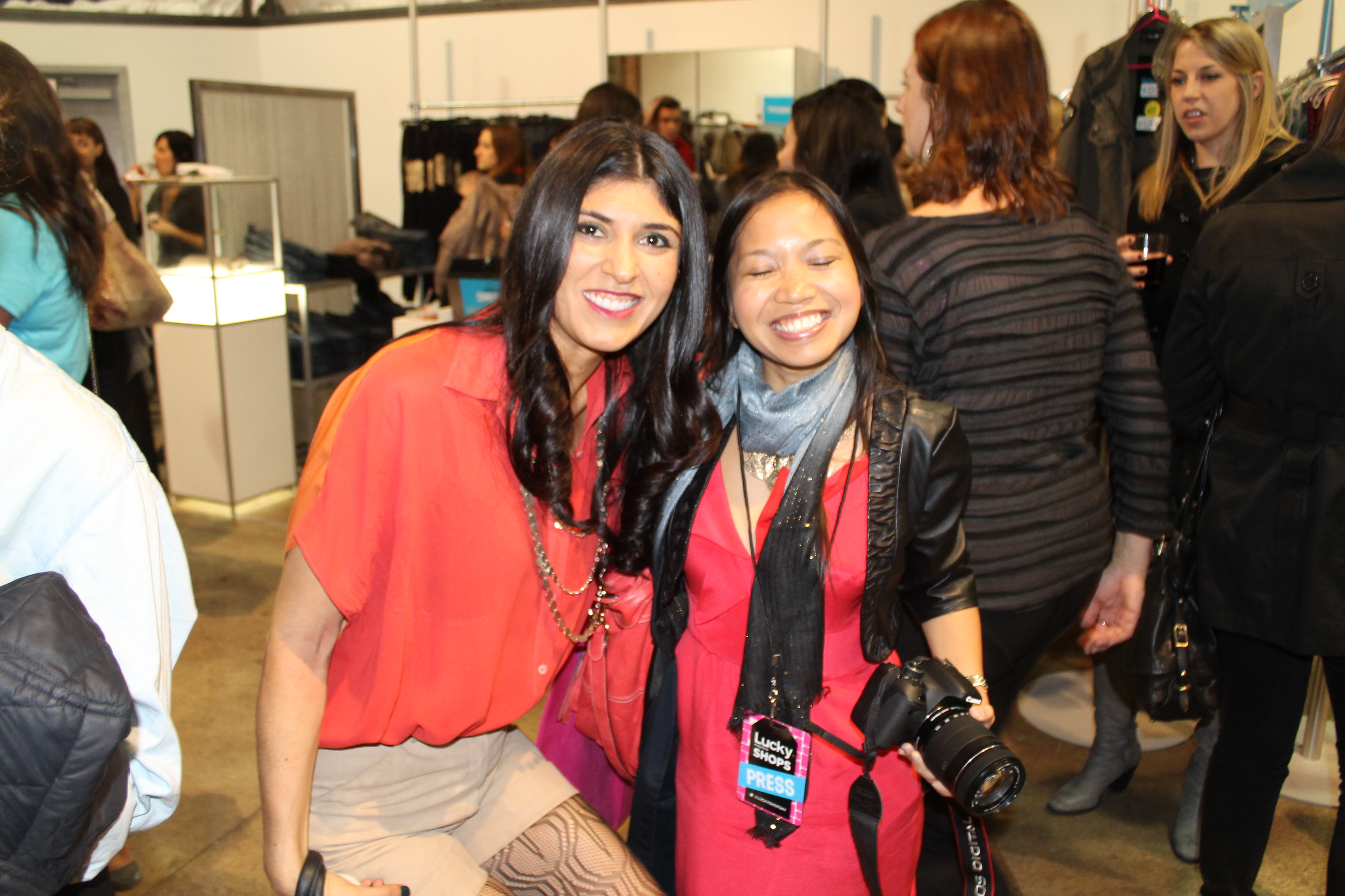I invited a few friends at the event and we bee-lined it to Rebecca Minkoff, and all walked away with a new purses. We circled the ground floor and then made our way upstairs to the Hunter Dixon booth. I’m new to their designs but am keeping them on my radar since I wanted everything in their booth! After settling on a pair of pants and skirt (my dates bought up just dresses and tops), it was time to move on. Two Lucky Shop shopping bags full later, I was cut off.