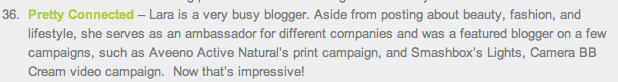 Talk about waking up to some amazing news… Pretty Connected was listed in iFabbo’s 50 U.S. Beauty & Fashion Blogs to Watch & Learn From!! iFabbo is the premiere international organization for fashion, beauty and lifestyle bloggers, brands and technology companies. If you’re a fashion and/or beauty blogger this is an exceptional blogger network to be apart of. Membership is free (but you do need to apply).