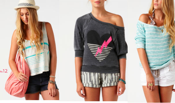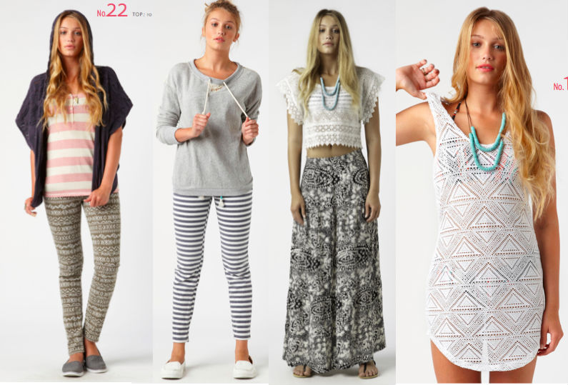In between stitching my new suit, I perused the room draped in the Roxy Summer 2012 Collection. It doesn’t matter the temperature outside, there’s nothing that puts me more in the mood for Summer, then Roxy. Board shorts, rompers, beach cover ups… the collection makes me want to move to beach and never look back. Although I’m past the stage in my life where I could ever pull off tie-dye or more of the hippyish styles.